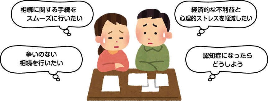 など、お気軽にご相談ください。また、お客様が元気なうちに死後事務委任や民事(家族)信託についてもご相談ください!