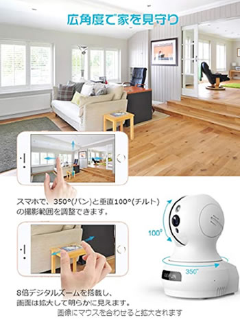 「シニアの方の見守り」や「療養中の要介護者への見守り」として遠隔での見守りが可能です。防犯用としては、帰宅前に部屋の確認や動体検知機能による通知機能を活用することでより安心に。
